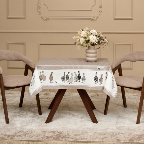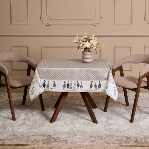 СКАТЕРТЬ "FAMILY FARM" 110Х140СМ , 100% ХЛОПОК, КАПУЧИНО , ТВИЛ, ПРОПИТКА