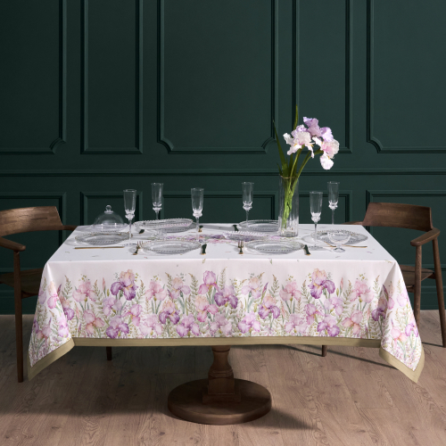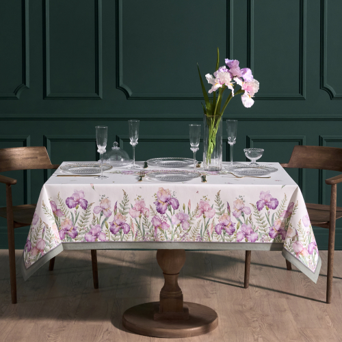 СКАТЕРТЬ "ИРИСЫ" 140Х180СМ ,БЕЛЫЙ, 100% ХЛОПОК,ТВИЛ ПРОПИТКА