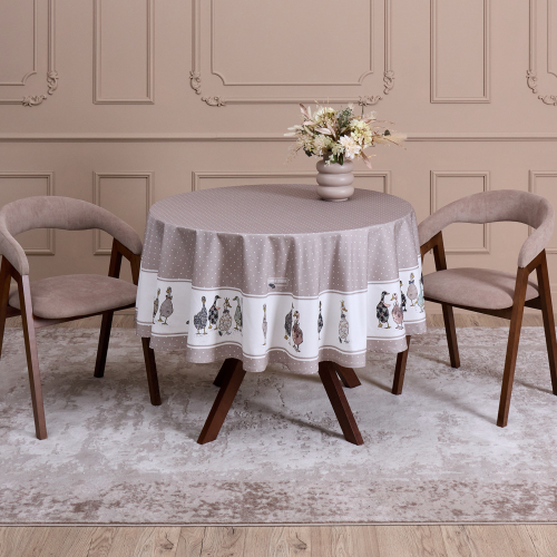 Круглая скатерть из коллекции Family Farm от бренда Lefard — практичное и стильное решение для сервировки стола. Изделие диаметром 190 см выполнено из прочного 100% хлопка (твил) и дополнено водоотталкивающей пропиткой, которая надёжно защищает стол от влаги и пятен. Поверхность легко очищается и быстро сохнет, сохраняет форму даже при активной эксплуатации.