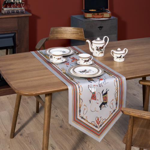 СКАТЕРТЬ КРУГЛАЯ "ЛИСТЬЯ МОРРИСА" GOLD STRIPE D150 СМ , 100% ХЛОПОК , ТВИЛ, ПРОПИТКА