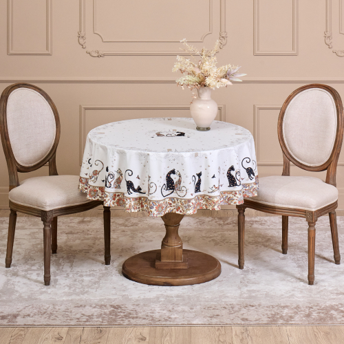 СКАТЕРТЬ КРУГЛАЯ "ПАРИЖСКИЕ КОТЫ" ,150 СМ, ТВИЛЛ ,БЕЛЫЙ,ПРОПИТКА