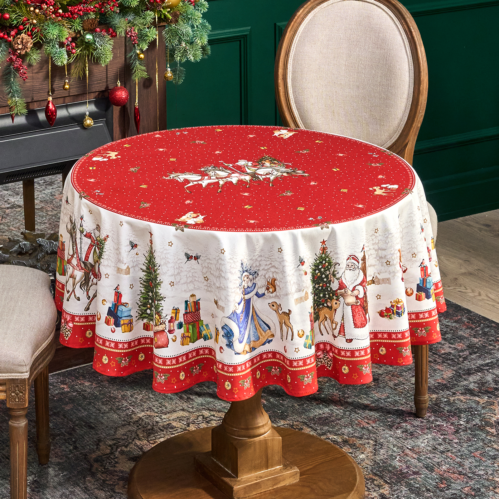 СКАТЕРТЬ КРУГЛАЯ "С НОВЫМ ГОДОМ"150 СМ ,КРАСНЫЙ, 100% ХЛОПОК ,ТВИЛ