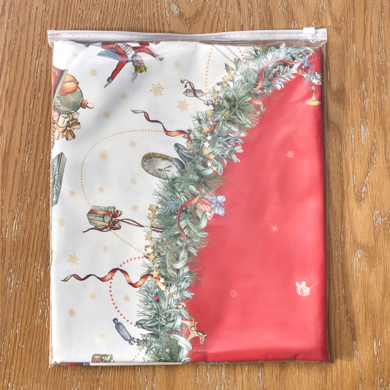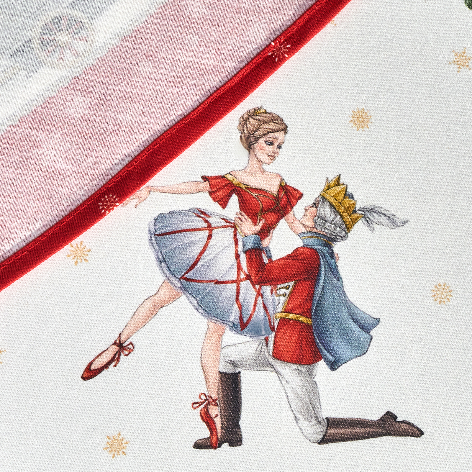 Цифровая печать по всей поверхности гарантирует яркий, детализированный рисунок даже после многочисленных стирок. Дизайн в зимней рождественской стилистике передаёт атмосферу волшебства: на ткани изображены игрушки, подарки и герои балета «Щелкунчик».