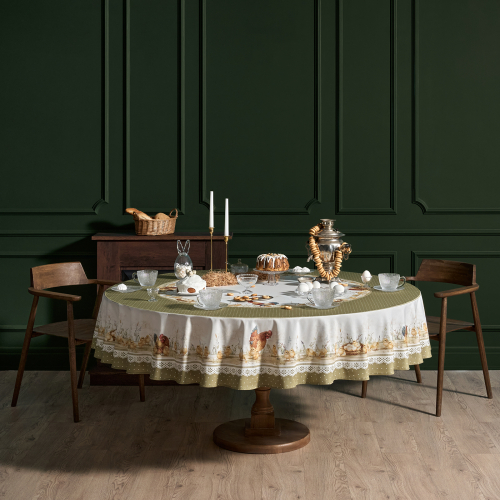 Стильная круглая скатерть может стать отличным подарком на Пасху или Новоселье для мамы, бабушки, подруги или близкого человека, который ценит уют и красивый домашний текстиль.