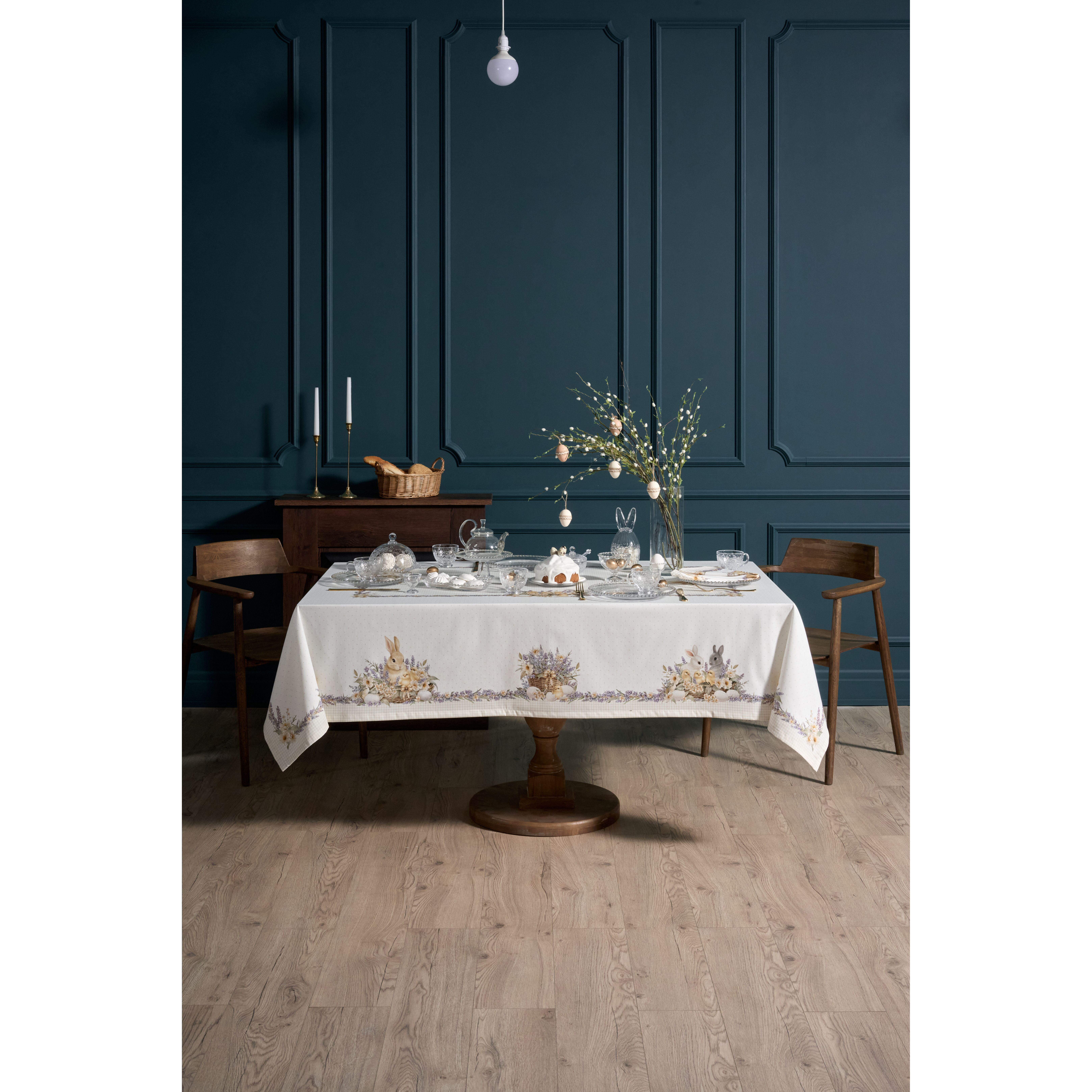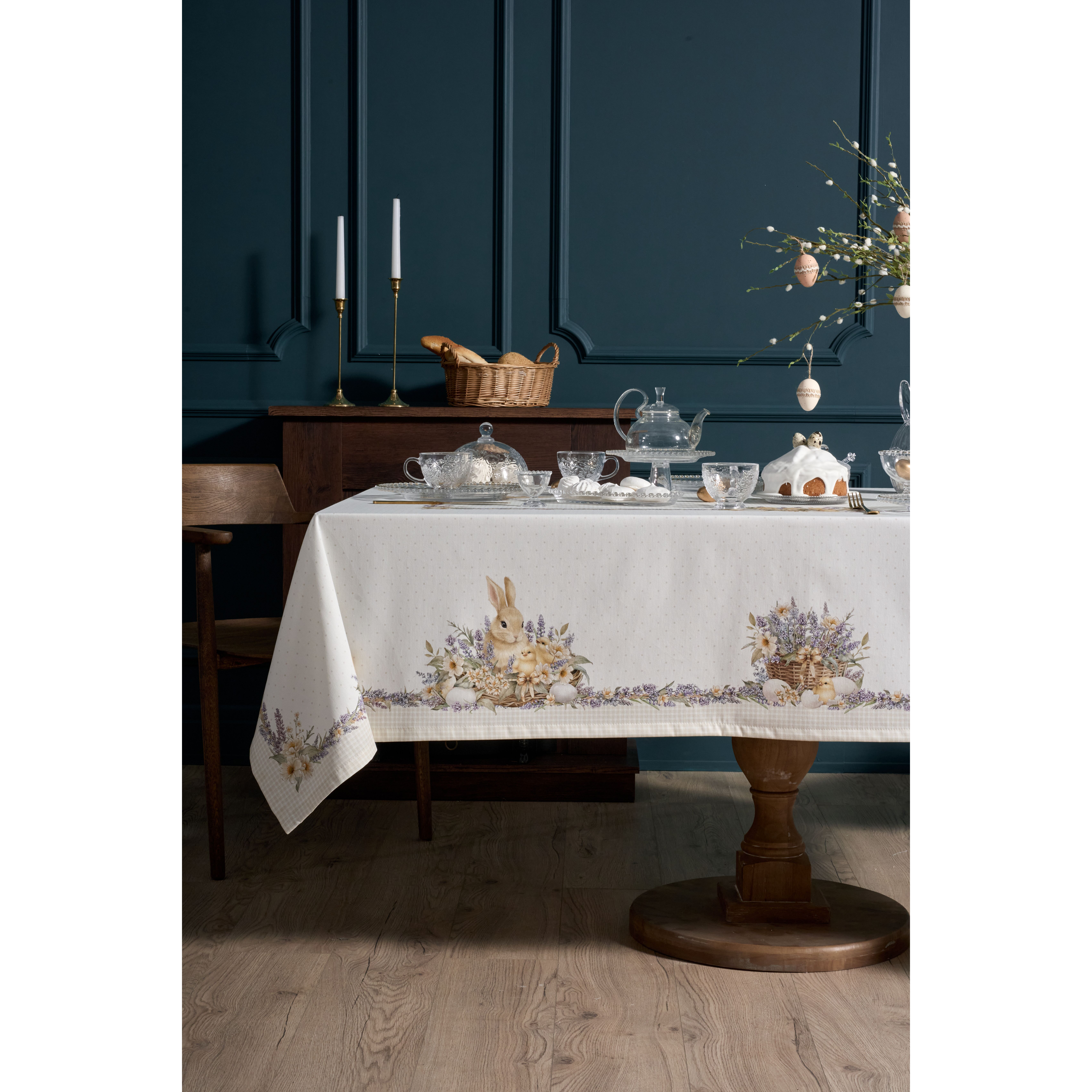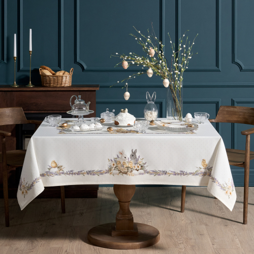 Прямоугольная пасхальная скатерть коллекция Лавандовая весна от бренда Lefard наполняет дом атмосферой весеннего уюта и праздника, создавая тёплое и гармоничное настроение в сервировке стола.
