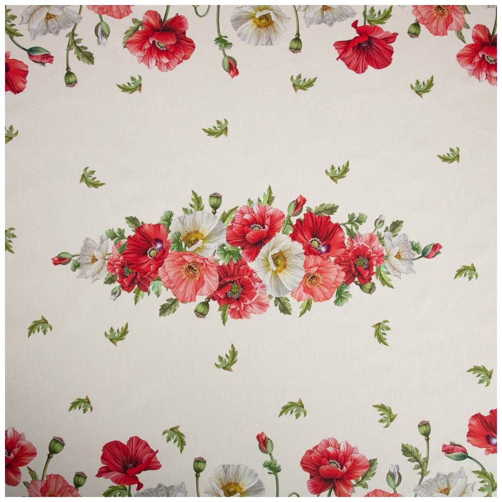 СКАТЕРТЬ "МАКИ" 140Х180 ,КРЕМОВЫЙ, 100% ХЛОПОК С ПРОПИТКОЙ,ТВИЛ