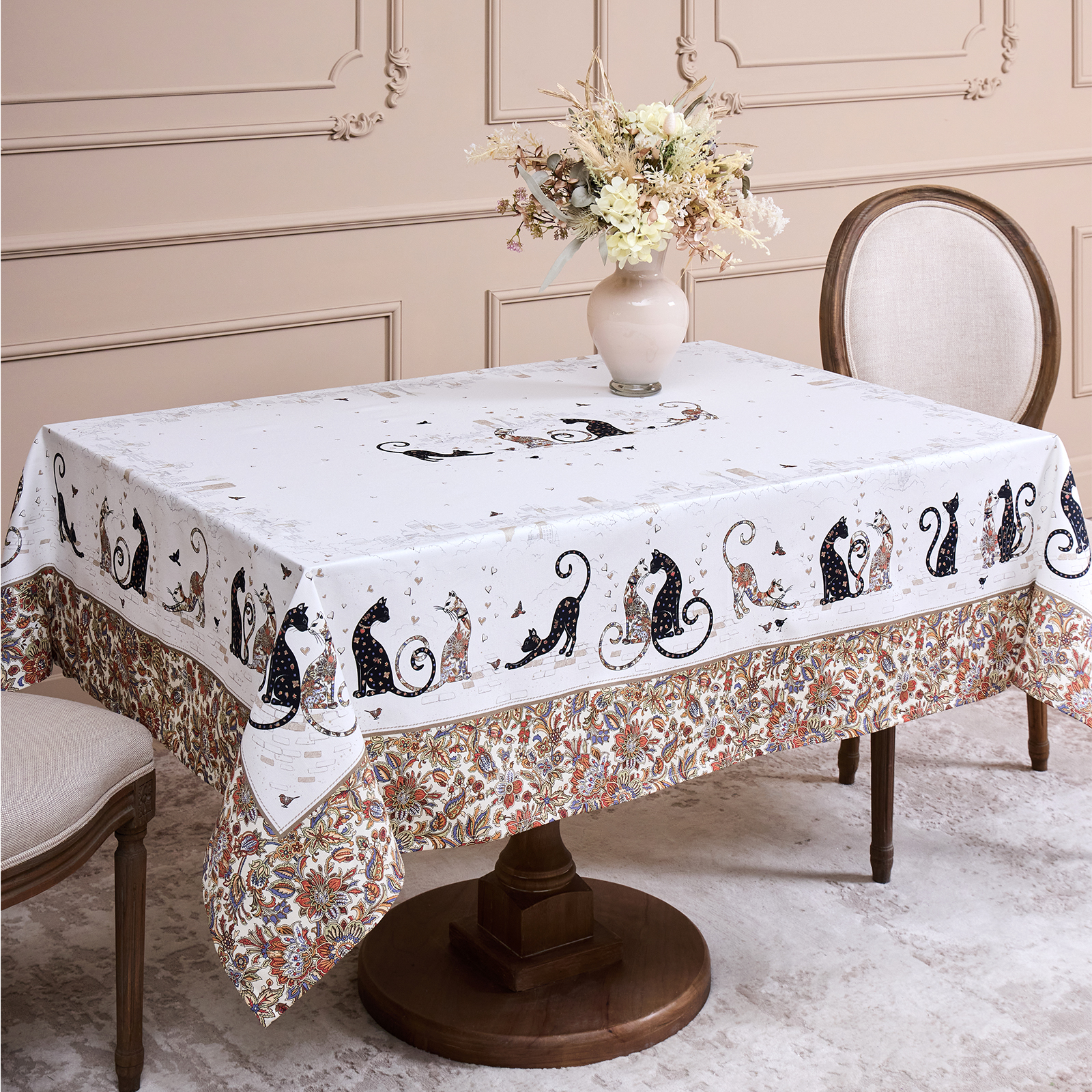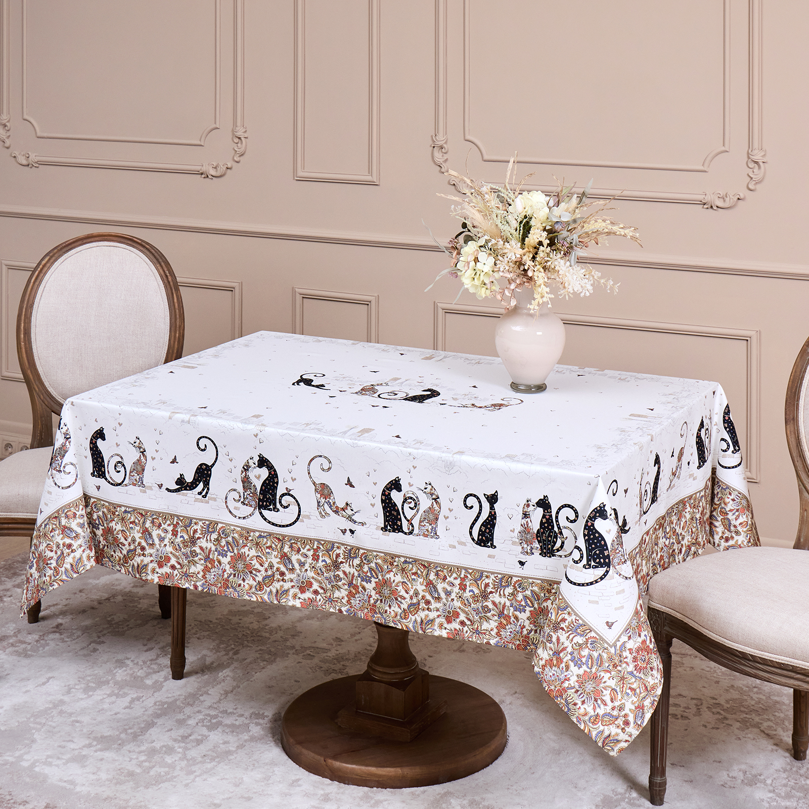 СКАТЕРТЬ " ПАРИЖСКИЕ КОТЫ" 110Х140СМ ,БЕЛЫЙ ,100% ХЛОПОК ,ТВИЛ С ПРОПИТКОЙ