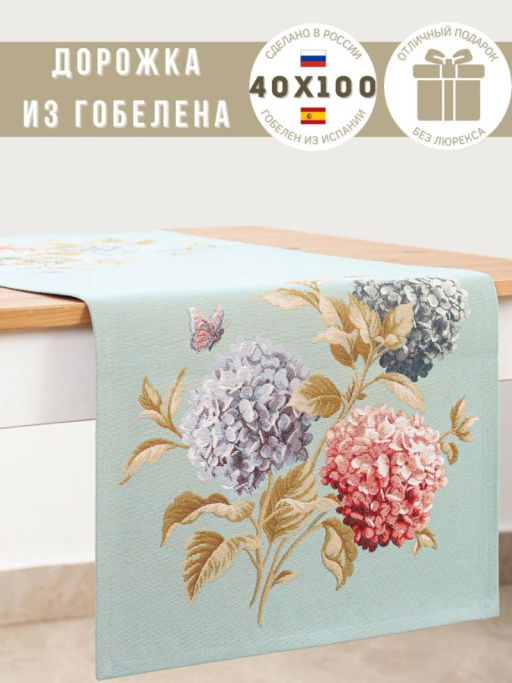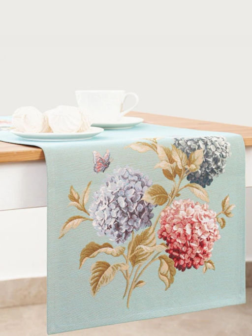 Гортензии и бабочки голубой фон Салфетка 40х95 см 2109339