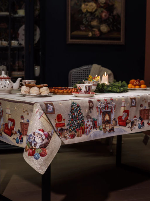 Котята у камина Скатерть 160х250 см 2107297 люрекс