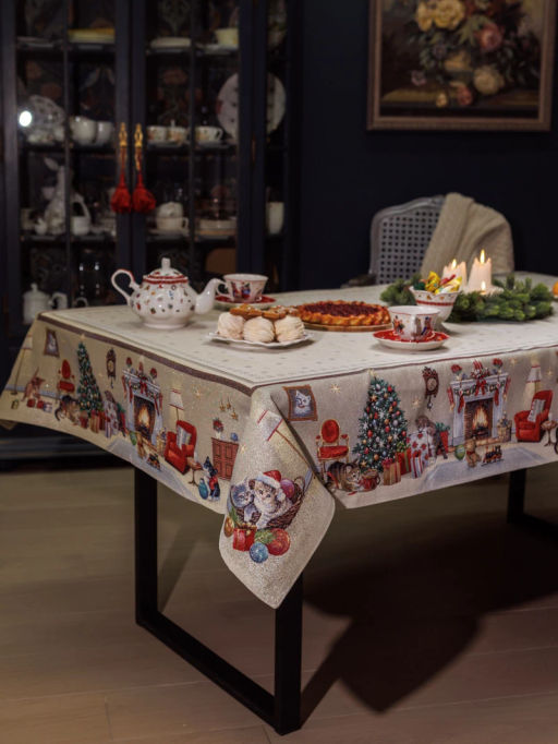 Котята у камина Скатерть 165х300 см 2107838 люрекс