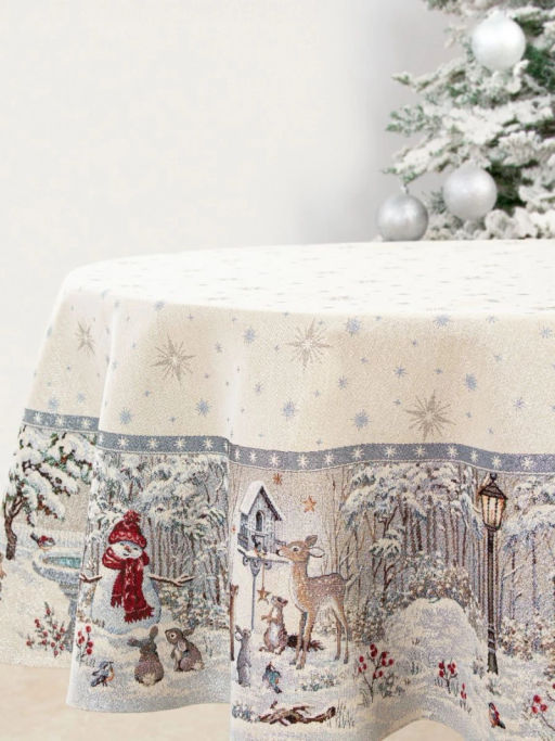 Лесные друзья у кормушки Скатерть круг д186 см 2101538 серебро