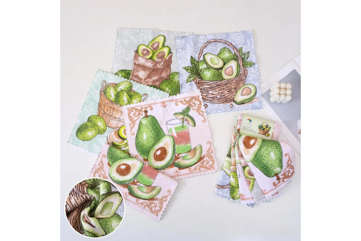 Салфетки и прихватки производятся из таких популярных материалов, как хлопок, махра, микрофибра. Эти ткани обладают прекрасной износостойкостью и долговечностью, способны хорошо впитывать влагу, экологически безопасные и не вызывают аллергии.