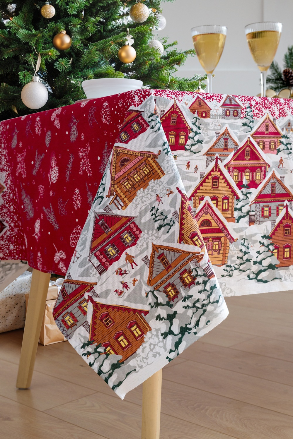 Скатерть Новогодняя ночь - идеальное дополнение к вашему праздничному столу! Эта скатерть для прямоугольного стола доступна в трех размерах: 120*150, 180*150 и 220*150. Изготовлена из качественной рогожки, которая состоит на 100% из хлопка. Эта скатерть не только украсит ваш стол, но и защитит его от повреждений. Благодаря яркому красному цвету и изображению заснеженных домиков, она создаст праздничное настроение и добавит волшебства вашей кухне. Идеально подходит для кухонного стола, эта скатерть станет отличным подарком на Новый год. Кроме того, ее качественный пошив и стойкость красок гарантирует долговечность и сохранение ярких цветов даже после многократных стирок. Цвет: красный; Материал: рогожка;рогожка; Состав: 100% хлопок.