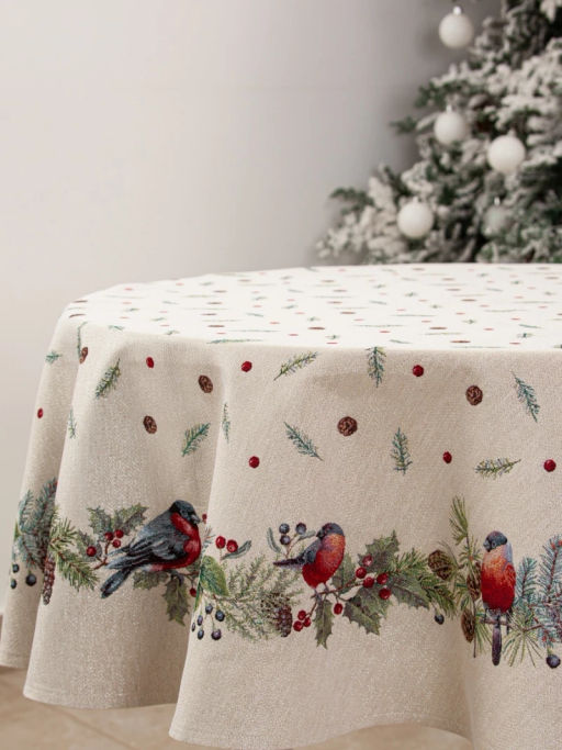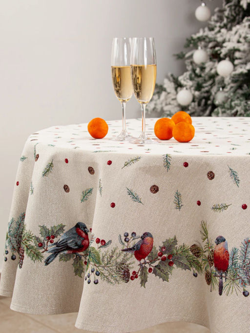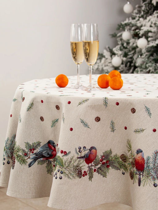 Новогодние друзья Снегири Скатерть круг д165 см 2104515