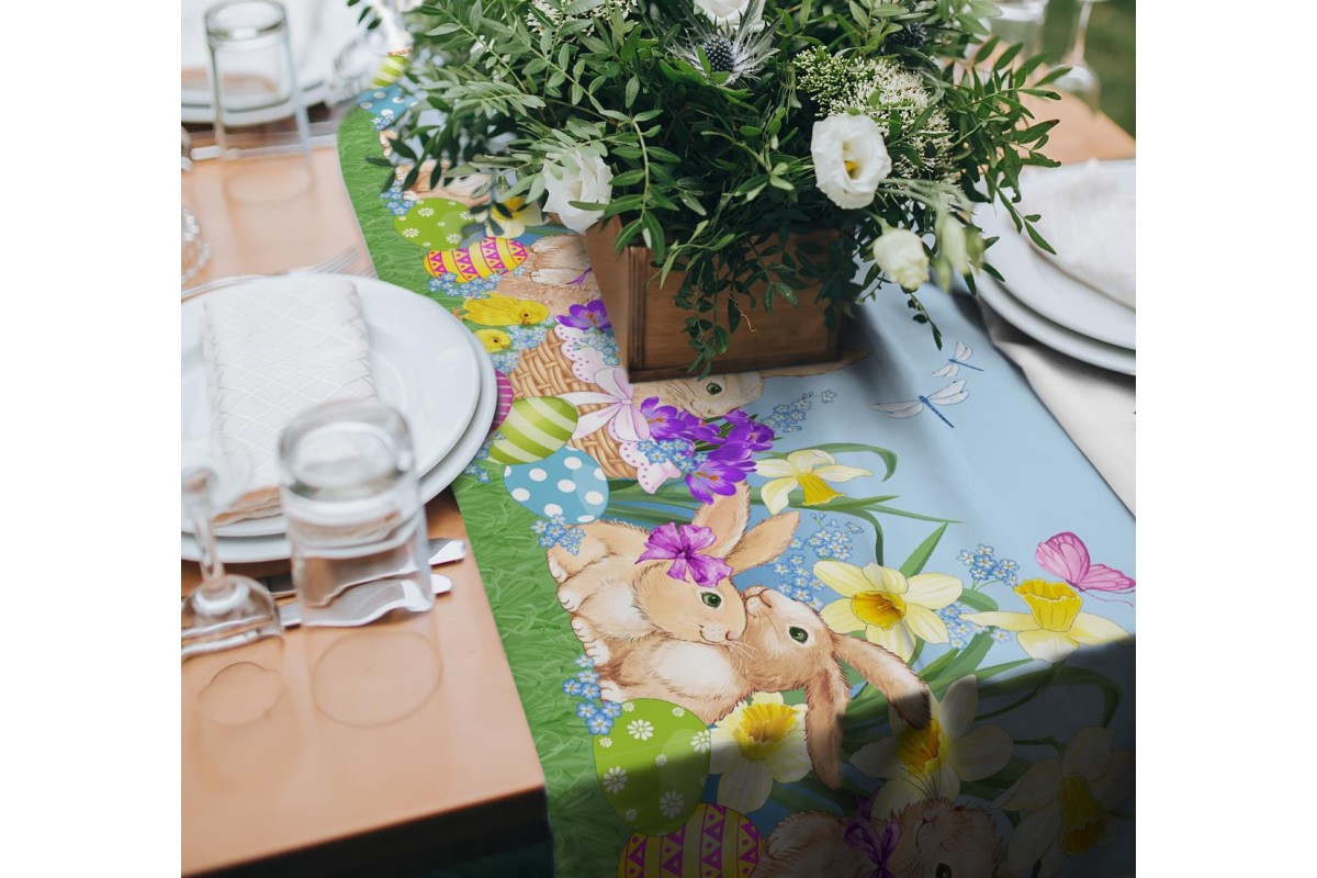 Салфетка-дорожка на стол хлопковая "Пасхальные зайчики" арт. 35004 вид 1 тк   имеет оригинальный модный дизайн и превосходное качество при небольшой цене. Она заметно преобразит вид Вашей кухни, добавит ей ярких цветов, придаст помещению дополнительный комфорт и домашний уют. Такая дорожка может стать очень уместным и универсальным подарком близкому человеку!