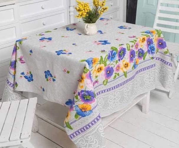 Скатерть "Анютины глазки" 150*150см. рогожка хлопок 100%