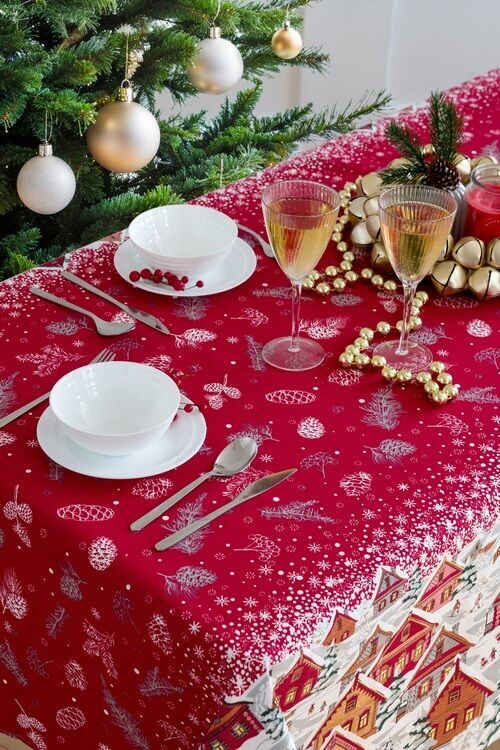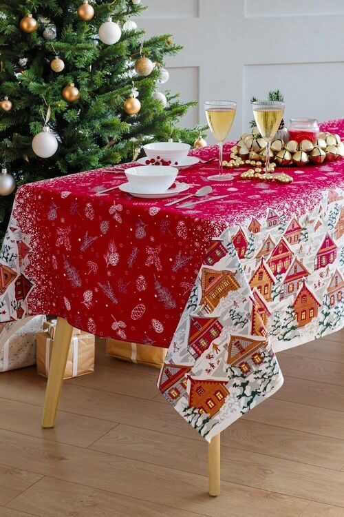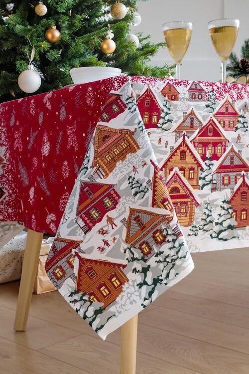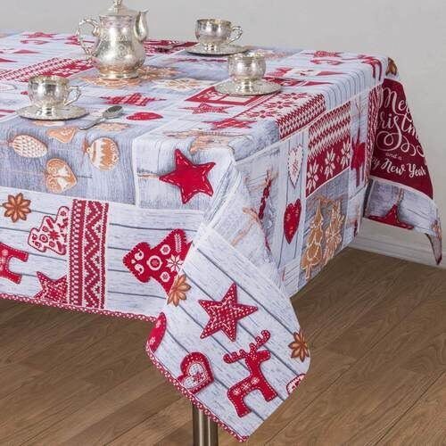Скатерть "Новогодние истории" 150*150см. рогожка хлопок 100%