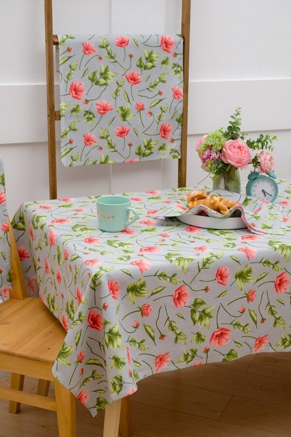 Скатерть "Полевые маки" 150*180см. рогожка хлопок 100%