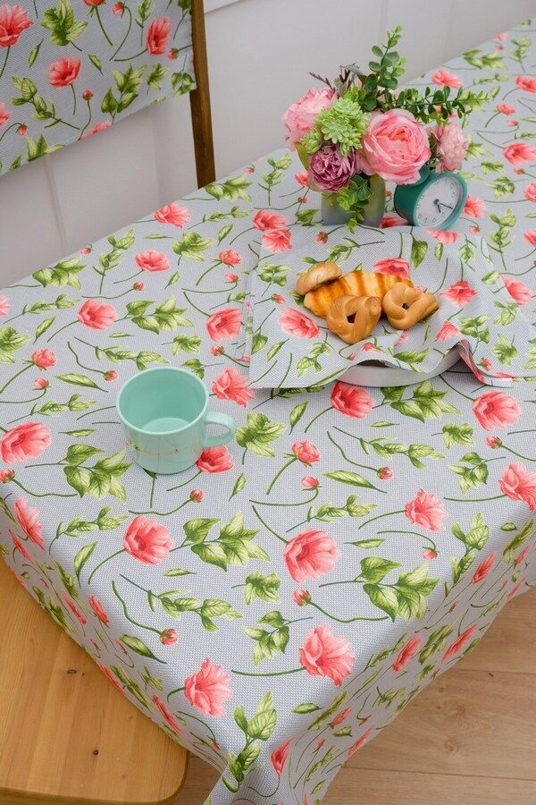 Скатерть "Полевые маки" 150*220см. рогожка хлопок 100%