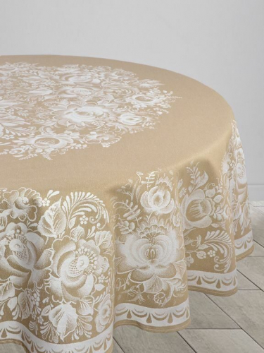 Скатерть Премиум круглая "Цветы"-графит D 178 см. п/лен