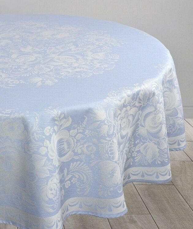 Скатерть Премиум круглая "Цветы"-голуб. D 178 см. п/лен