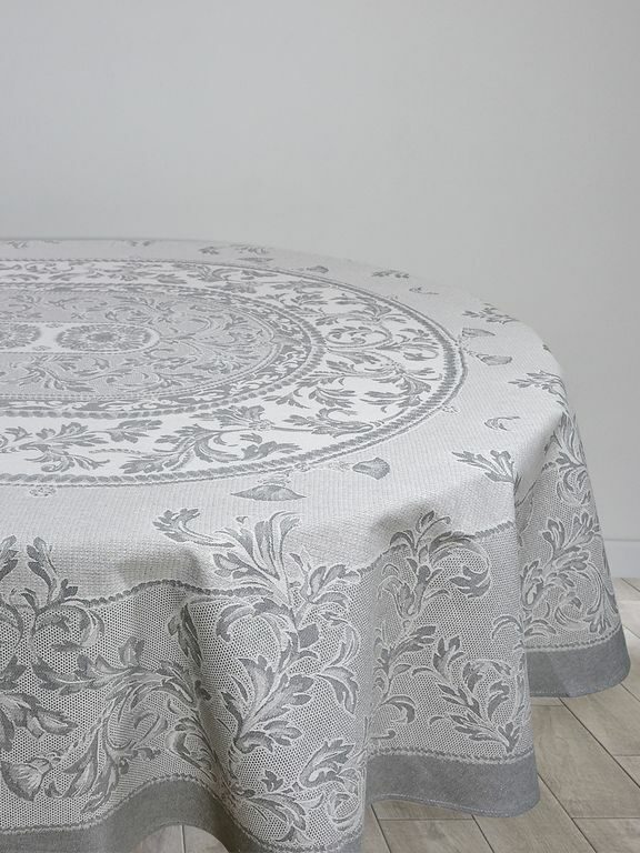 Скатерть Премиум круглая "Грация"-сер. D 183 см. п/лен