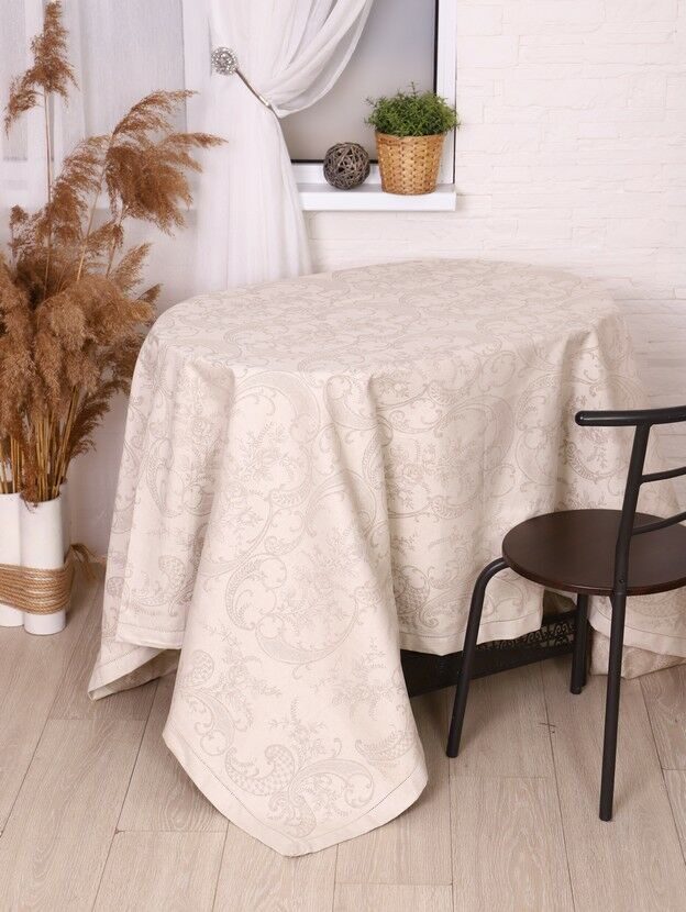 Скатерть из льна класса Премиум - сочетание непревзойденного качества, утонченного стиля, необычайной красоты и долговечности. Она станет прекрасным украшением Вашего стола. Прикосновение к ткани дарит самые приятные ощущения. Скатерть изо льна гигроскопична, быстро впитывает влагу, но в тоже время быстро высыхает. Лен устойчив к загрязнениям, выносит большое количество стирок.