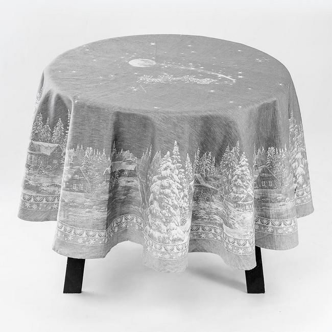 Скатерть Премиум круглая "Рождество"-сер. D 178 см. п/лен