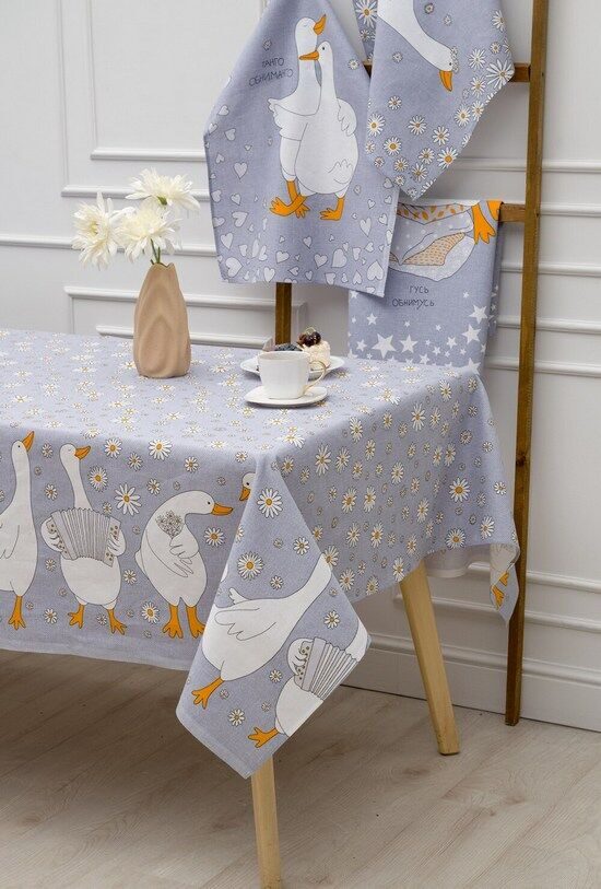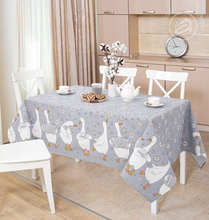 Скатерть "Веселые гуси" 150*220см. рогожка хлопок 100%