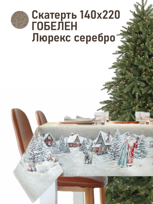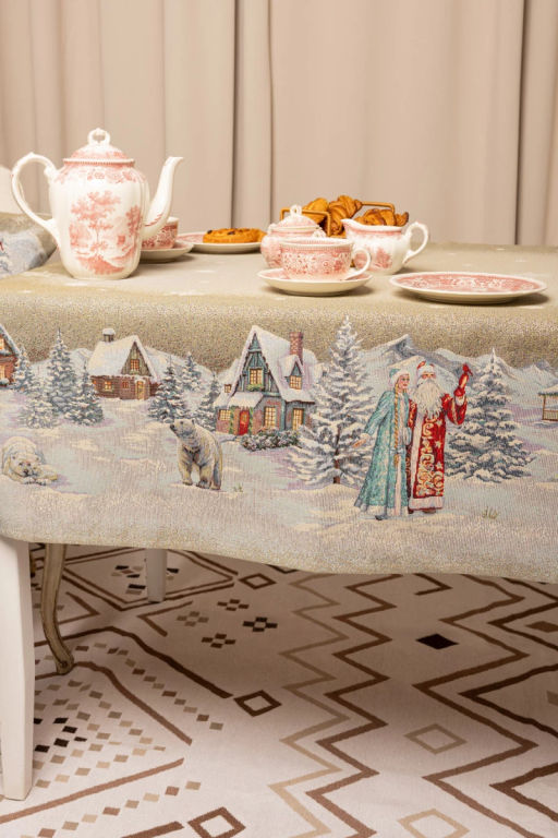 Снегурочка и ДМ Беж Скатерть 140х220 см серебро 2518922 New