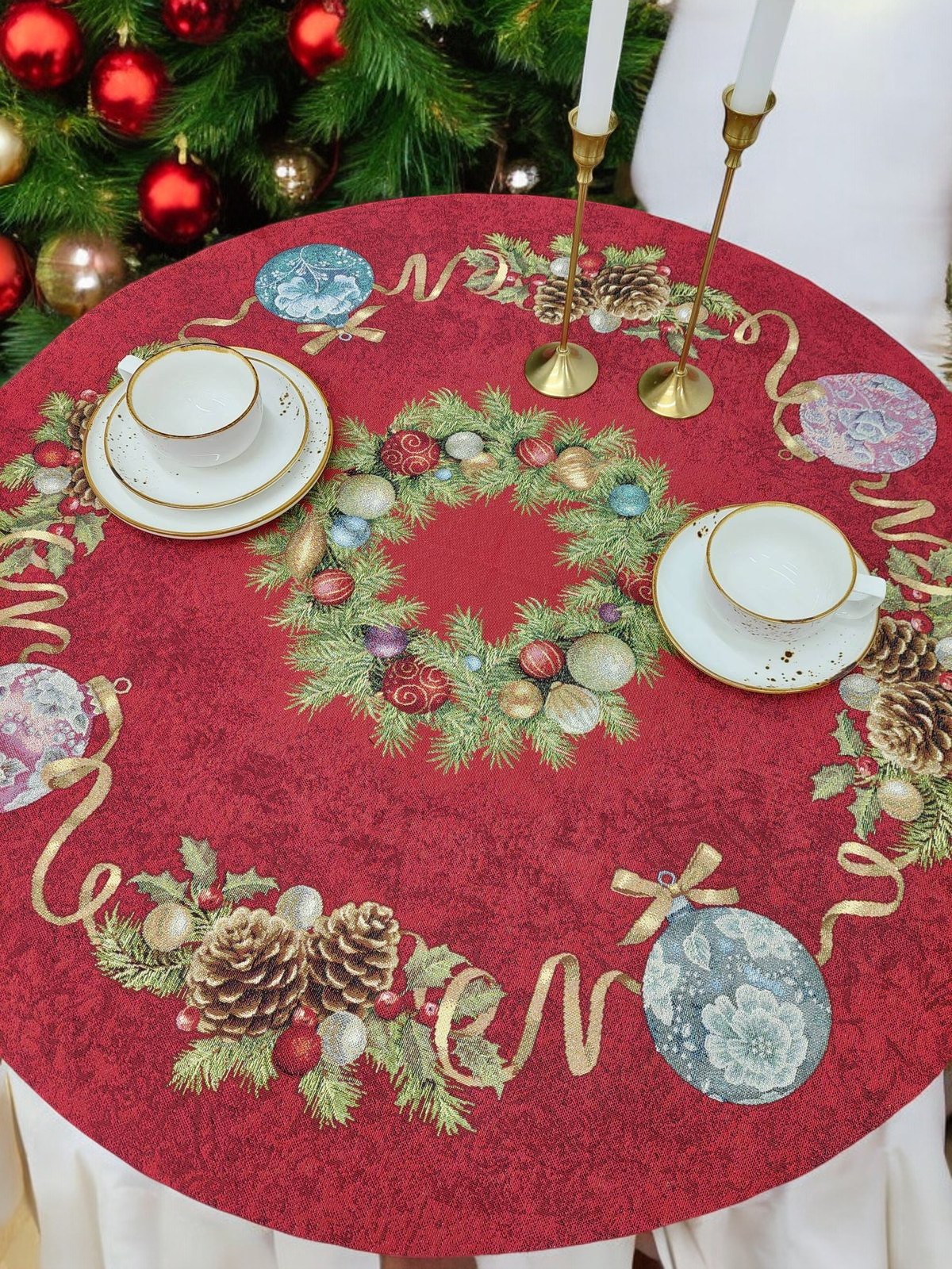 Венок из нобилиса красный фон Салфетка круг д90 см золото 2106798 подгиб