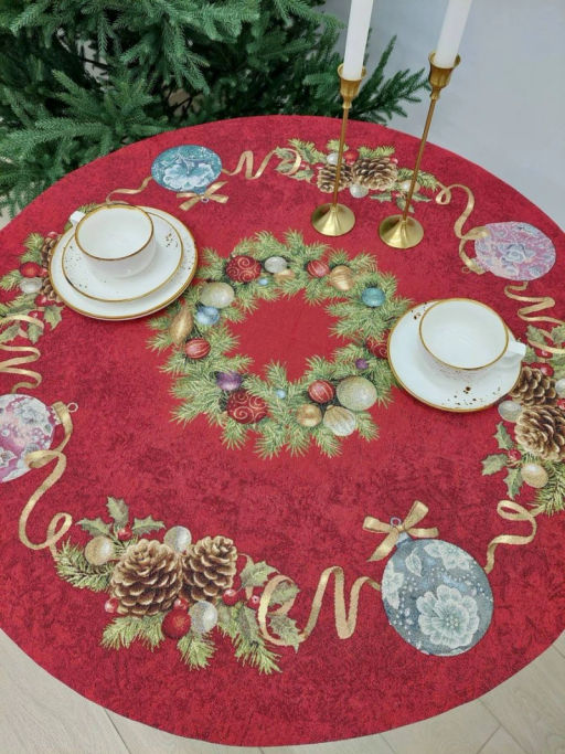 Венок из нобилиса красный фон Салфетка круг д90 см золото 2106798 подгиб