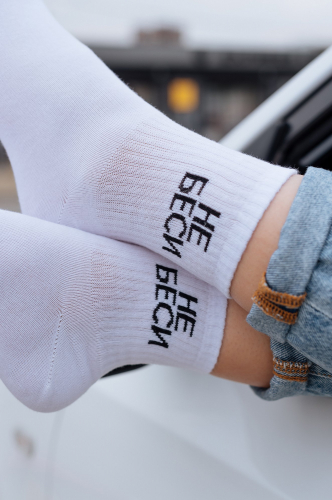 Белые женские носки с надписью Адекват..показать не наш формат — стильная база, которая легко впишется в повседневный образ и точно поднимет настроение!
