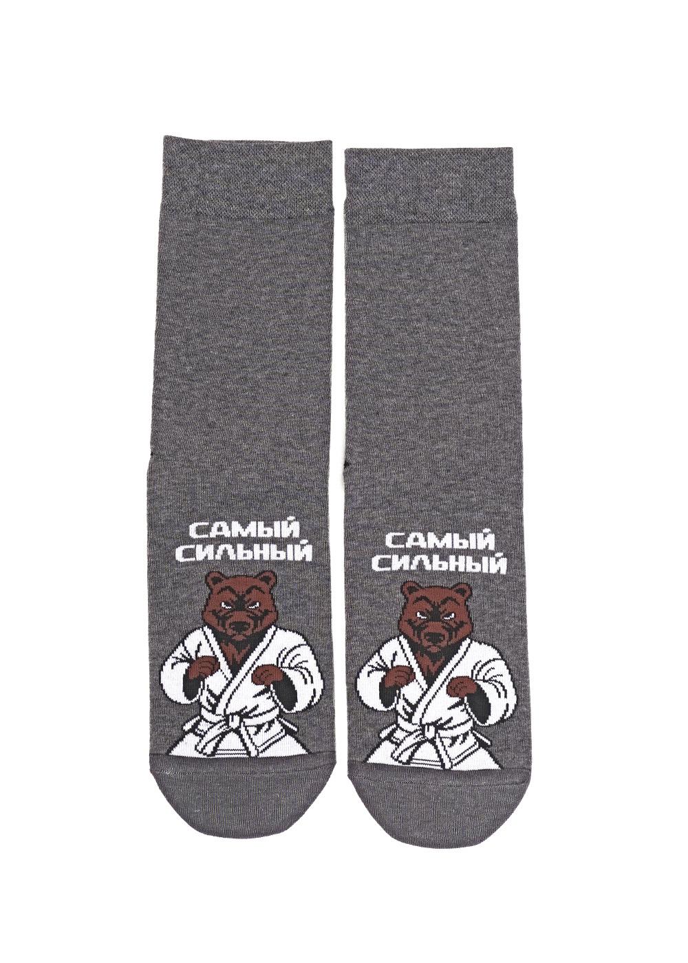 Мужские носки с рисунком на мыске и надписью "Самый сильный".