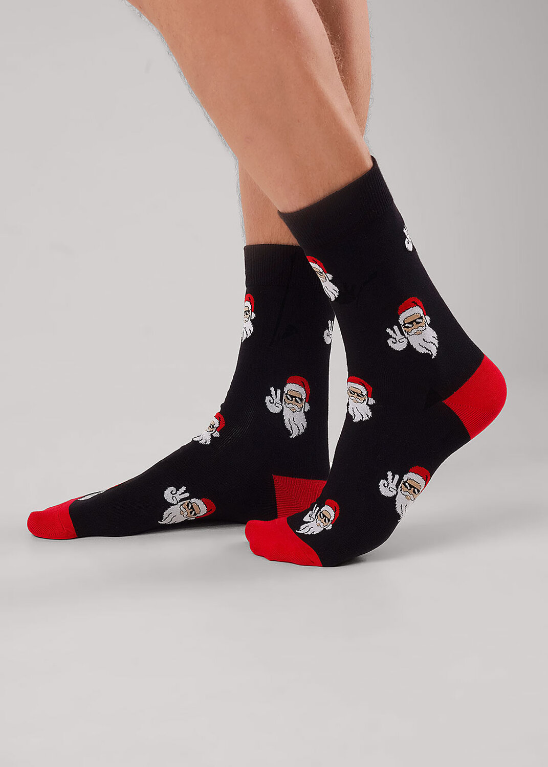 носки мужские с выделенным мыском и пяткой , с рисунками лицо деда мороза