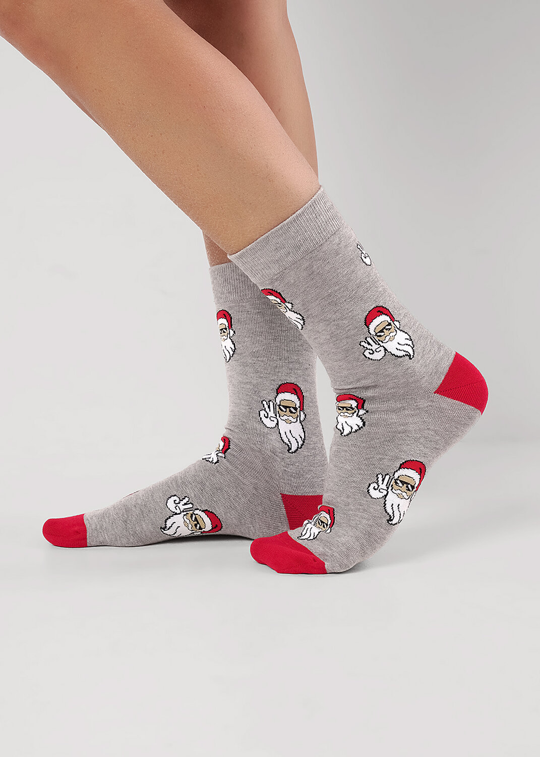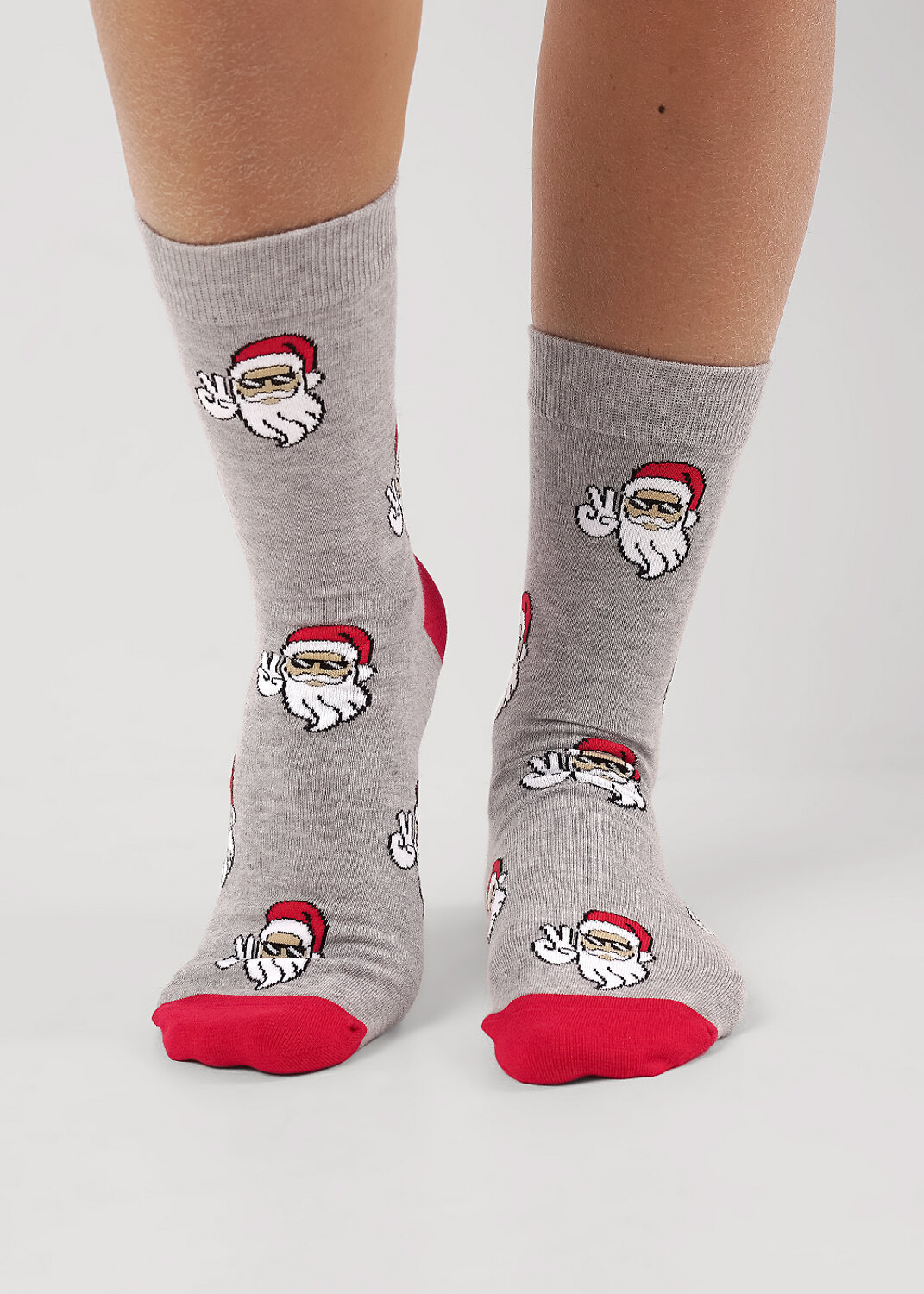 носки мужские с выделенным мыском и пяткой , с рисунками лицо деда мороза