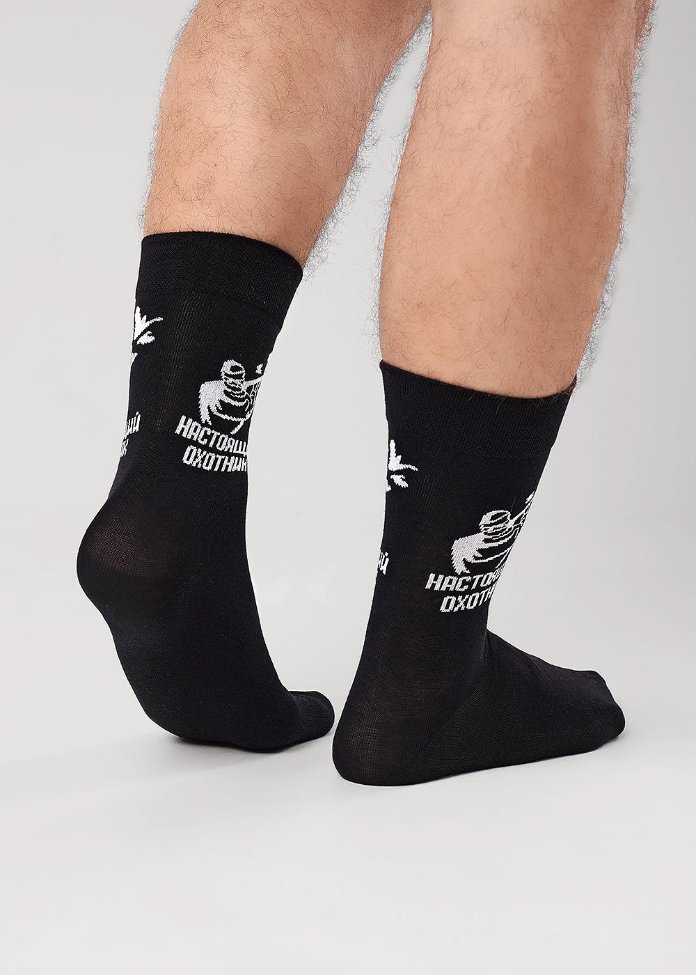 Мужские носки с рисунком и надписью "Настоящий охотник".