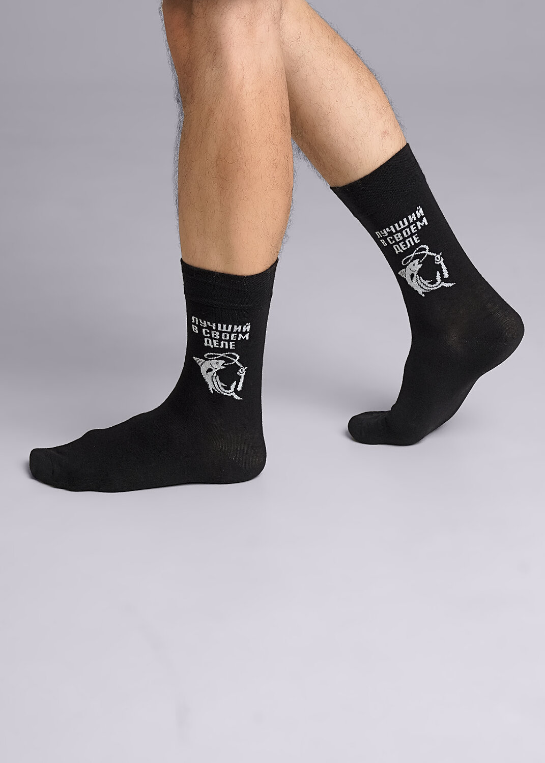 Носок мужской с рисунком и надписью на паголенке "ЛУЧШИЙ В СВОЕМ ДЕЛЕ"
