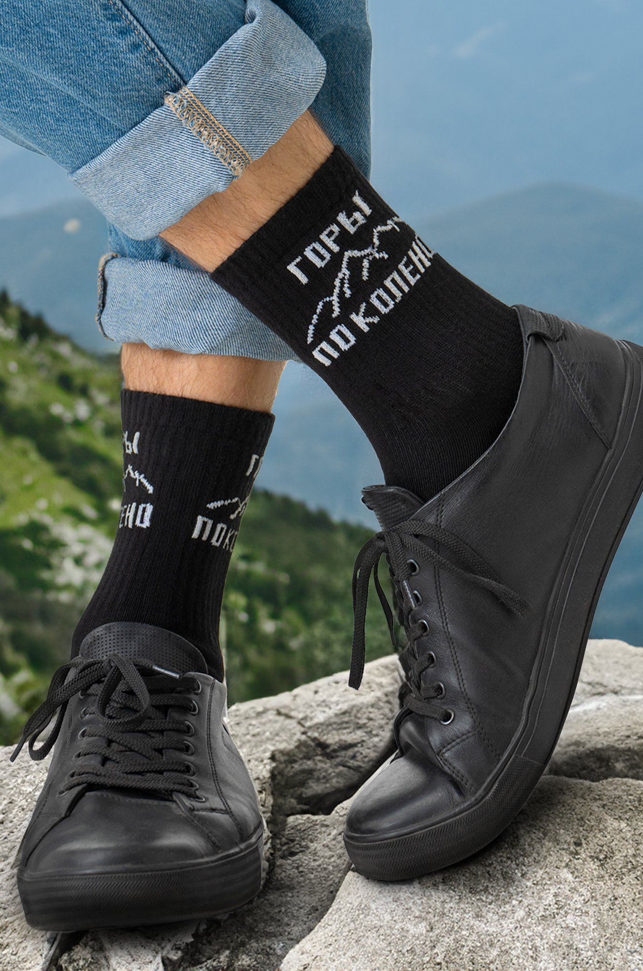 Носки из трикотажа подойдут для летних и осенних прогулок, пригодятся для спортивных пробежек и станут явным акцентом для фотосессий. Классные носки – это оригинальный подарок на 23 февраля, День святого Валентина или день рождения. дписью – идеальный способ добавить в образ крутую изюминку! Черные носки для мужчин выполнены из нежного хлопка. Клёвый рисунок поднимет настроение и разбавит серые будни.