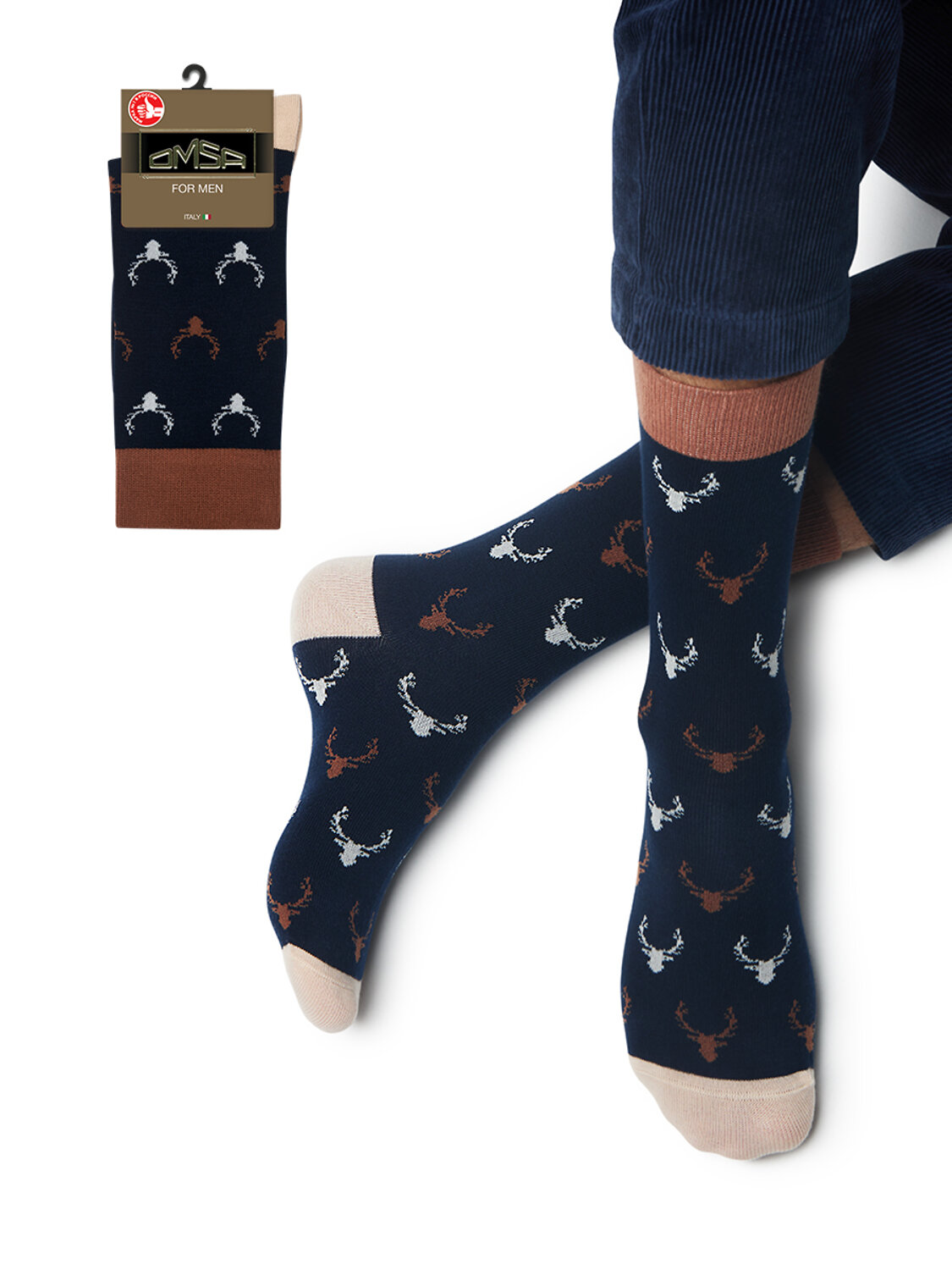 Мужские высокие носки OMSA STYLE 508 с лаконичным рисунком в виде оленя. В составе - высококачественный хлопок, который позволяет коже дышать, отлично впитывает влагу и подходит даже для самой чувствительной кожи, и эластан, который обеспечивает превосходное облегание. Удобная резинка и кеттельный (плоский) шов на мыске создают дополнительный комфорт.