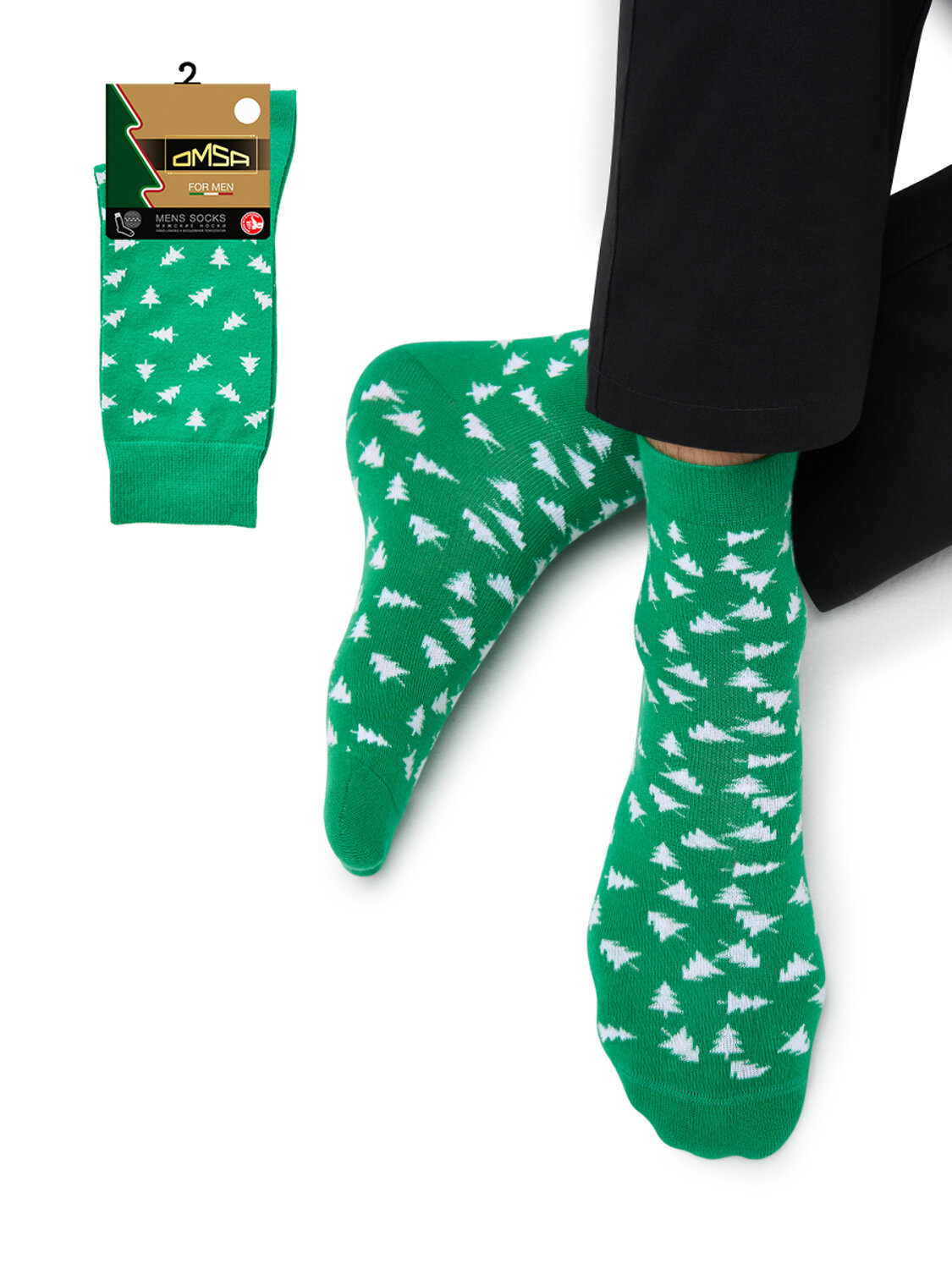 Мужские новогодние носки OMSA с праздничным рисунком. Высококачественный хлопок в составе отличается мягкостью, воздухопроницаемостью и идеально подходит даже для самой чувствительной кожи. Удобная резинка обеспечивает идеальное облегание, а кеттельный (плоский) шов на мыске создает дополнительный комфорт.