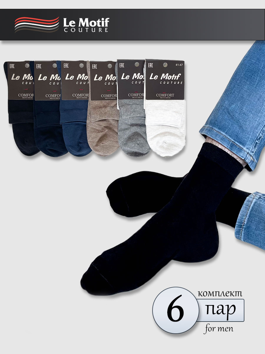 Носки мужские Le Motif Couture — всесезонные средние носки из хлопка однотонные. Изготовлены из премиального хлопка с добавлением высококачественного эластана. Удобная резинка создает дополнительный комфорт. Хорошо сохраняют форму и цвет, устойчивы к истиранию. Превосходно облегают и приятно ощущаются на ноге. Носки мужские высокие идеально подходят как для занятий спортом, так и для повседневного использования.