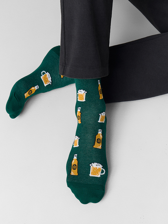 Мужские высокие носки с узором в виде пивных бокалов и бутылок - идеальное сочетание стиля и комфорта для вашего повседневного гардероба. Они выполнены из высококачественного хлопка, что обеспечивает превосходные тактильные ощущения и долговечность. Натуральный материал известен своей мягкостью и гипоаллергенными свойствами, что делает его идеальным выбором для повседневного ношения. Он обеспечивает отличную воздухопроницаемость, позволяя вашим ногам дышать, и эффективно отводит влагу, поддерживая их в сухости и свежести весь день. Забавный узор в виде пивных бокалов и бутылок придаст вашему стилю нотку оригинальности и игривости. Добавьте эти носки в свой гардероб и наслаждайтесь непревзойденным комфортом и стилем каждый день. Сделайте ваш образ уникальным вместе с Mark Formelle!