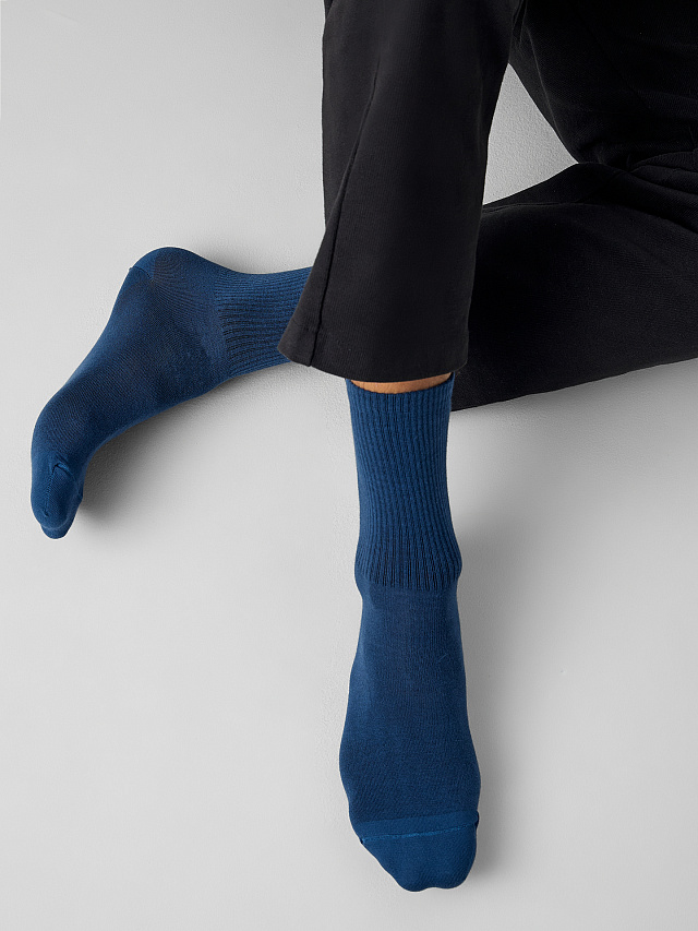 Рис.1663 Мужской носок классический высокий с плотным бортом однотонный.