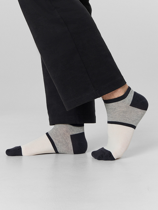 рис.3104 Укороченные мужские носки с рисунком в виде сочетаний полосок разного цвета.