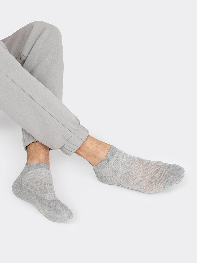 Однотонный спортивный мужской носок с язычком над пяткой и сеткой на передней части. Состав: 2% эластан / 23% ПА / 75% хлопок. Комфортные и долговечные!