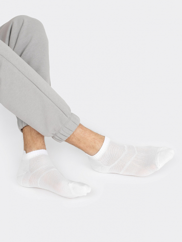 Носки мужские укороченные спортивные с язычком над пяткой и сеткой на передней части - отличный вариант для ежедневной носки. Короткие носки мужские изготовлены из гребенного хлопка - пряжи высочайшего качества, мягкой, тонкой, но прочной. Натуральные волокна отлично пропускают воздух, позволяя коже дышать, и впитывают влагу, дарят ощущение комфорта в течение всего дня. Для пошива коротких носков используются такие материалы, как хлопок, вискоза, лайкра, полиамид, эластан, а также различные комбинации этих материалов. Благодаря небольшому количеству эластана в составе, носки мужские короткие хорошо облегают стопу и сохраняют форму даже после множества стирок. Мягкая эластичная резинка надежно удерживает носки мужские спортивные на ноге, ноне давит. Пятка и мысок дополнительно усилены, что гарантирует защиту от протирания и повышенную износостойкость - мужские носки прослужат долго. Купите носки мужские от Mark Formelle - порадуйте родных и близких практичными подарками!