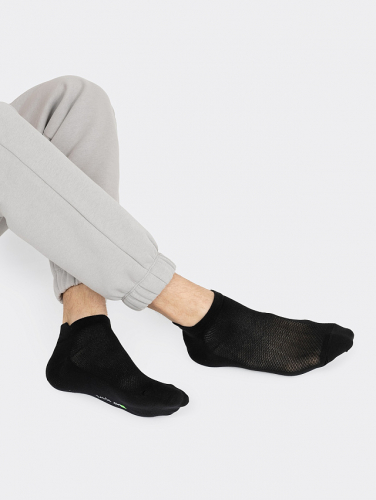 Однотонный спортивный мужской носок с язычком над пяткой и сеткой на передней части. Состав: 2% эластан / 23% ПА / 75% хлопок. Комфортные и долговечные!