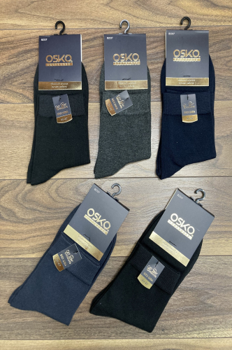 Мужские носки из плотного, эластичного хлопка с добавлением нити льна и крапивы в классической цветовой гамме. Модель средней высоты, с комфортным широким манжетом. На поголенке небольшой рисунок.