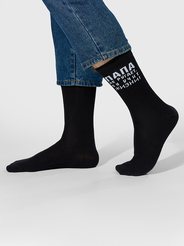 Носки мужские черные с надписью "Папа не ругает..."